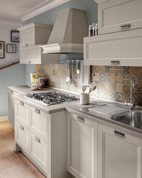 Cucina classica Gioia con ante in legno massello, varie colorazioni (noce, decape'), cucina componibile.