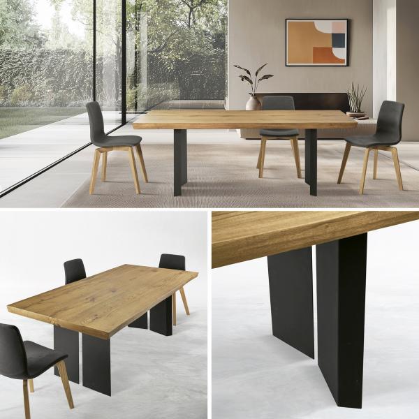Dimensioni, allunghe, finiture e colori di piani e gambe consentono al prodotto di adattarsi ad ogni spazio e a moltissimi ambienti.