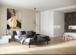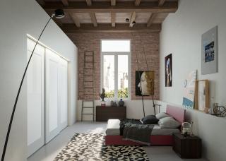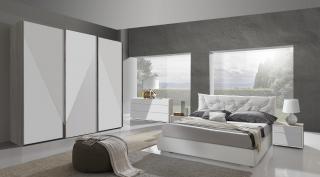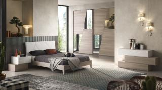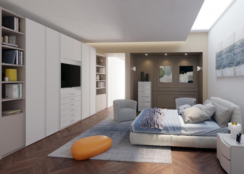 Camere da letto composte da armadi scorrevoli laccati o in essenza, con effetti molto simili al legno. Gli armadi hanno tantissimi accessori interni e la chiusura delle ante è ammortizzata.